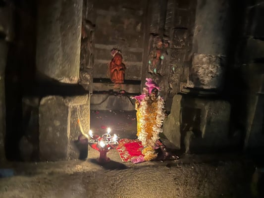 почитаемого Божества, то во время церемоний очень благоприятно зажигать рядом с ним свечу, благовония, преподнести свои "дары" - цветы, фрукты, драгоценности и тп.