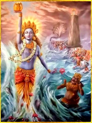 "Сойдя в бренный мир в облике Дханвантари, Всевышний даровал людям науку о целительстве, а Богам дозволил причаститься к напитку бессмертия, что был изготовлен ими в жертву Ему.