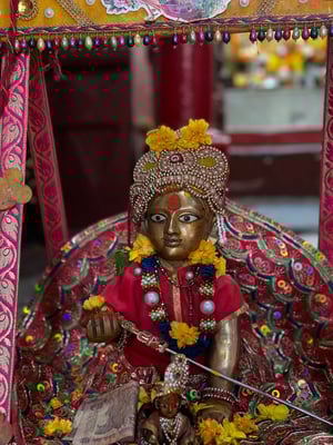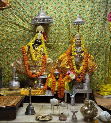 На протяжении тысячелетий здесь ежедневно проводятся богослужения для Кришны, Радхи, Вишну, Лакшми, Нарасимхи, Ханумана и других Божеств, живущих в этом Храме.